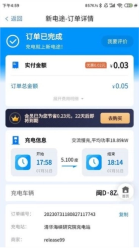 5、充电记录:完整保存每次充电数据,订单信息清晰可查。
